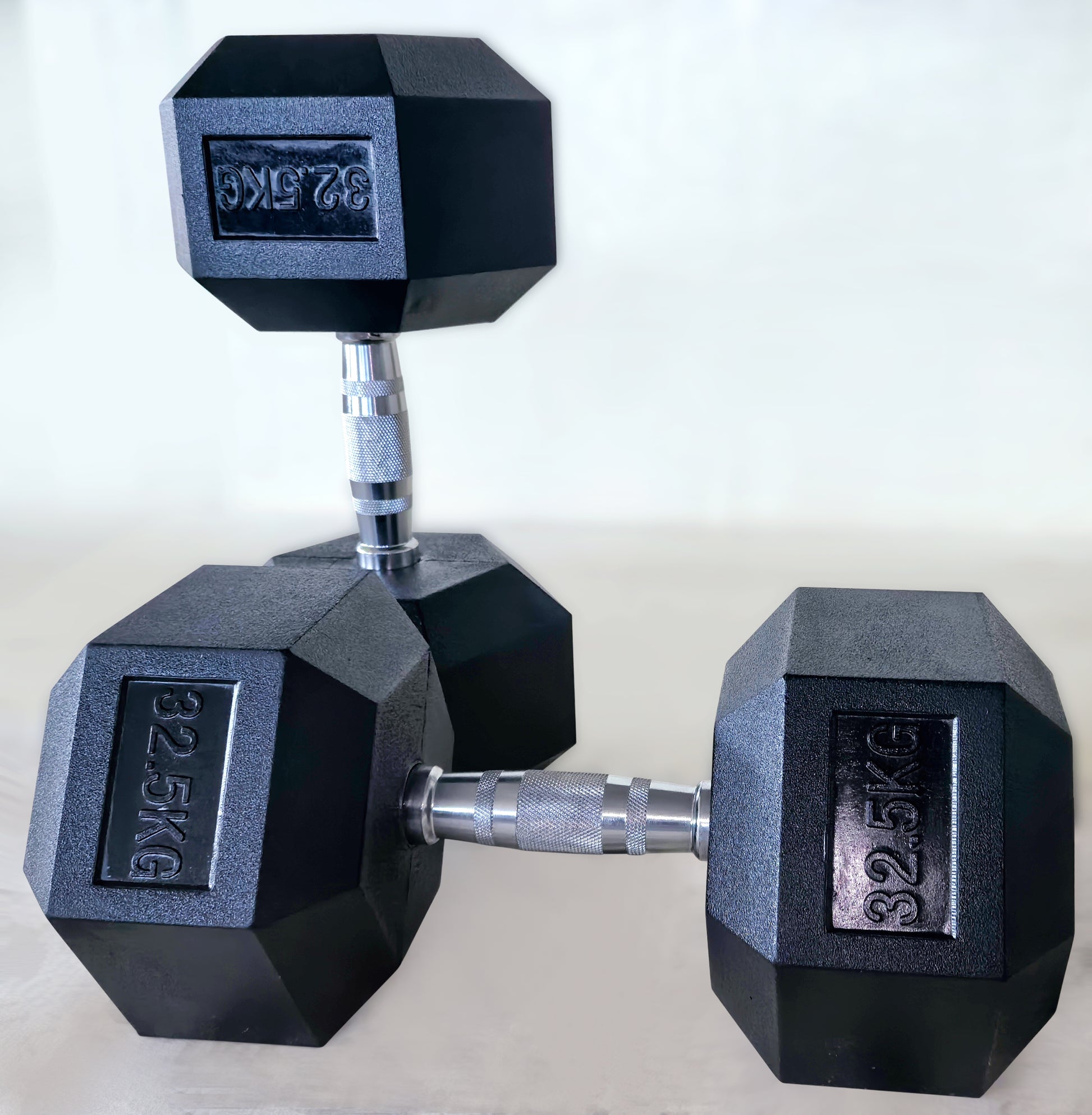 Set Weights: Hex rubberized weights in pairs, 30, 32.5, 35, 37.5 and 40 kg
